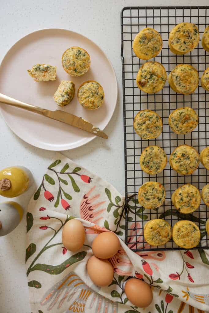 Even as a stay at home mama, I find myself always on the go or short on time! Whether I am picking up or dropping off kids or getting ready for the day, these egg bites serve me as the perfect snack and fuel no matter what! I also know that those Starbucks egg bites can be so tempting, but trust me, these are yummier, better for you and a fraction of the cost!