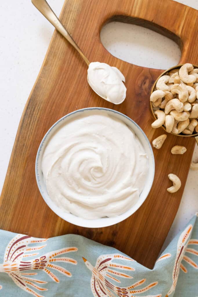 You have an overnight option or a quick option for cashew prep. Either soak your cashews overnight to soften them or boil them for 10 minutes to soften. Softened cashews blend easily and make a smooth cream.