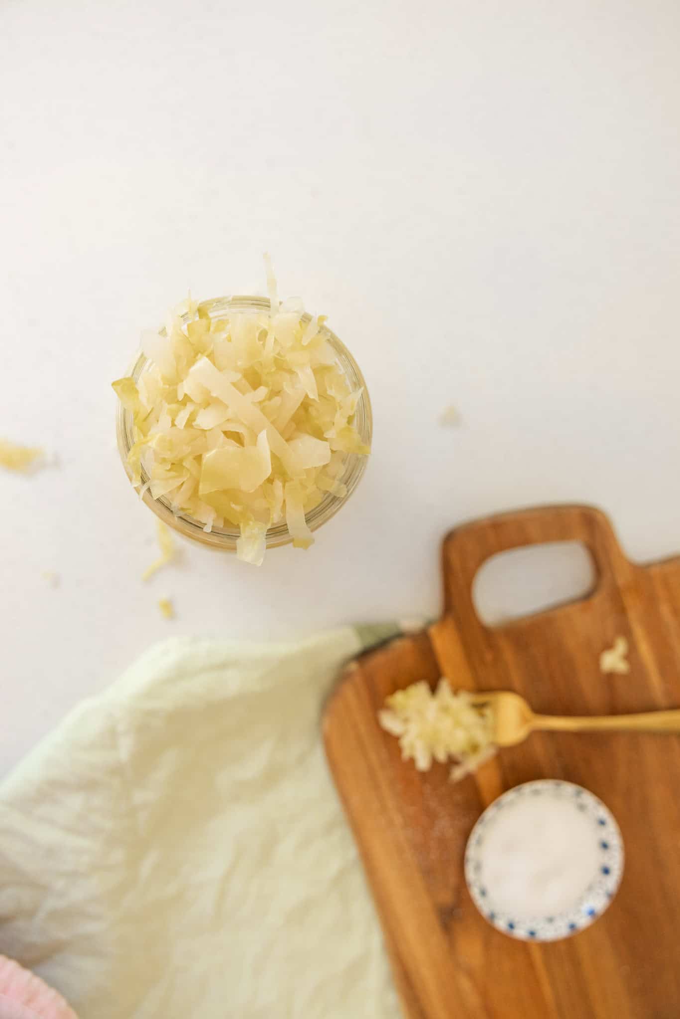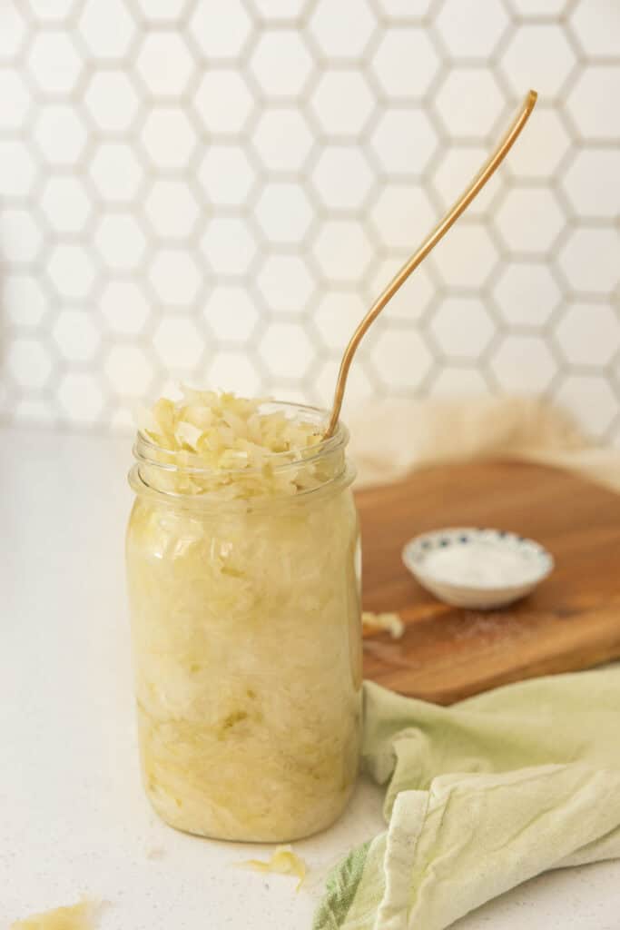 - Glucose/Corn Syrup: This is just straight up condensed sugar. Now, don’t get me wrong, I really like sugar but prefer using organic cane sugar or honey as they are less processed and more natural. Sugars such as a glucose or corn syrup can disrupt insulin levels, lead to huge gut health problems and that can affect everything else in the body. These types of sugars your body does not know what to do with and they create much harm and inflammation to your system. For our sauerkraut though, sugar does not need to be present here. It can also effect this type of fermentation, taking away the many benefits of it.