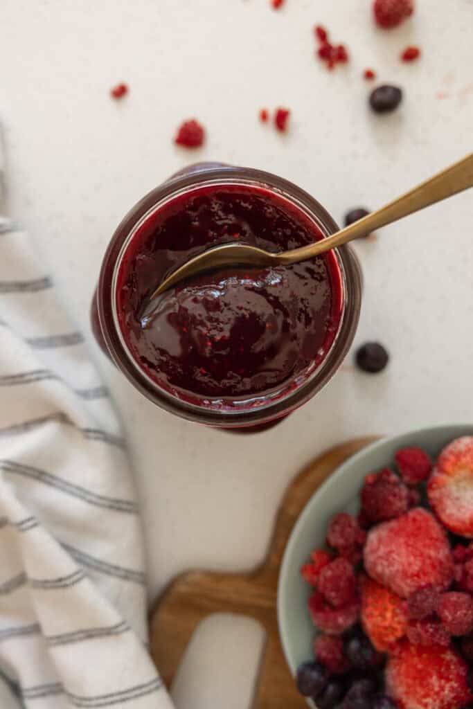 Reduce the amount of thickening agents if you want this to act as more of a syrup for waffles or pancakes!