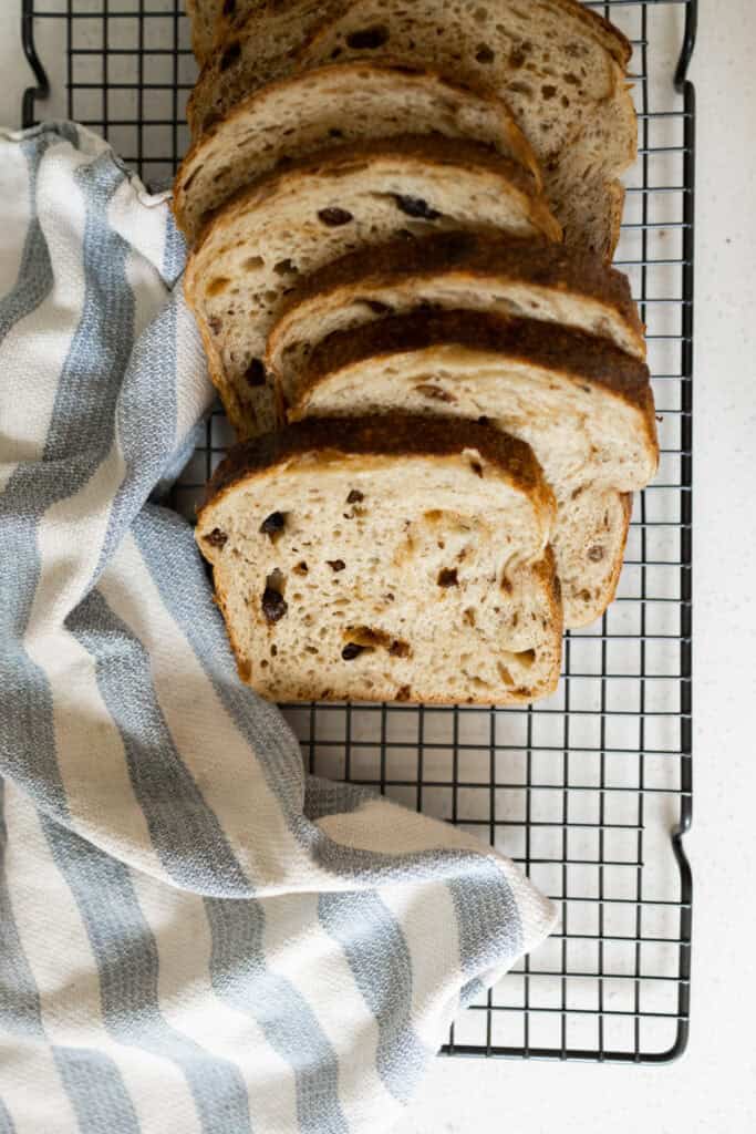 Using an active starter will help with flavour development (give your raisin bread some amazing tanginess!) and also give a helping hand at forming bubbles and air in the dough itself. PLUS, when I went to the store and took a peek at the ingredients in your basic storebought raisin loaf, I saw bleached flour, glucose and some did not even have REAL RAISINS in them. What is our world coming to?!