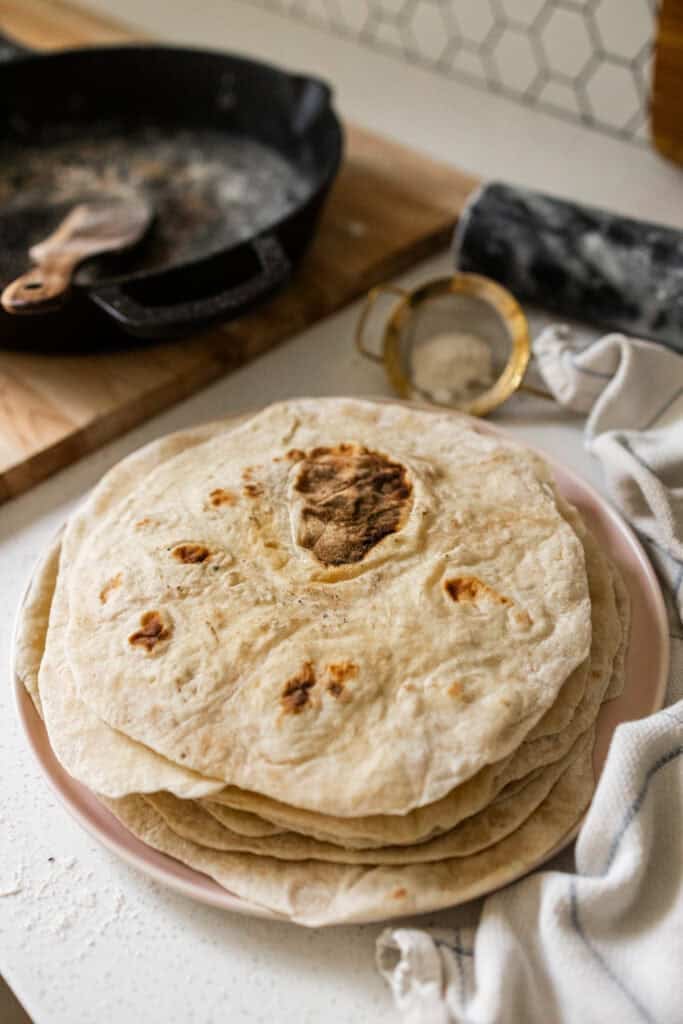 My jaw dropped when I saw the ingredients in store-bought tortillas. Corn syrup solids, canola oil, processed sugars… immediately no. We can do so much better AND save $$$ while we were at it. These tortillas come together beautifully with the wonder of sourdough and a good cast iron skillet. This recipe has served me well for YEARS, staying at the top of my kids favorite foods list.