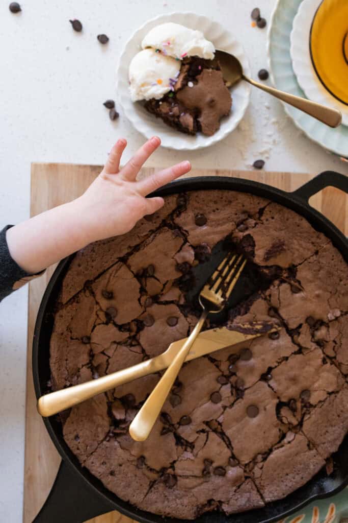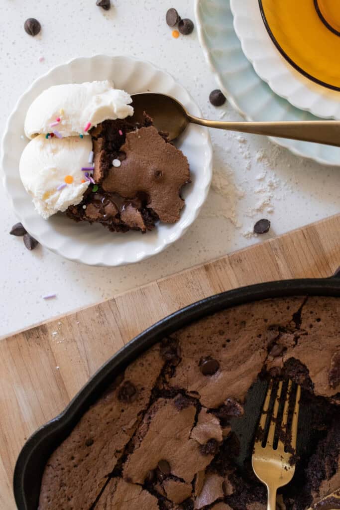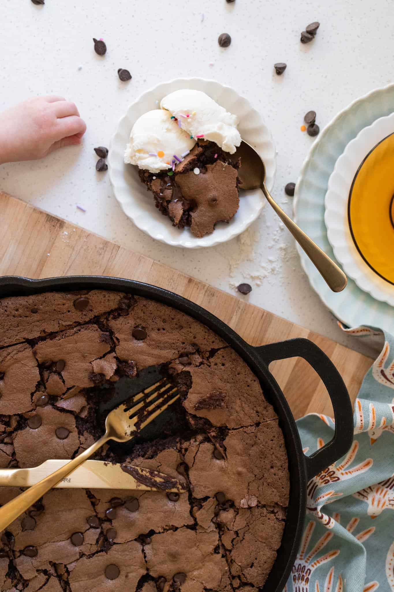 - Let cool for about 30 minutes before serving. We love topping this with ice cream, whipped cream, sprinkles or on its own!