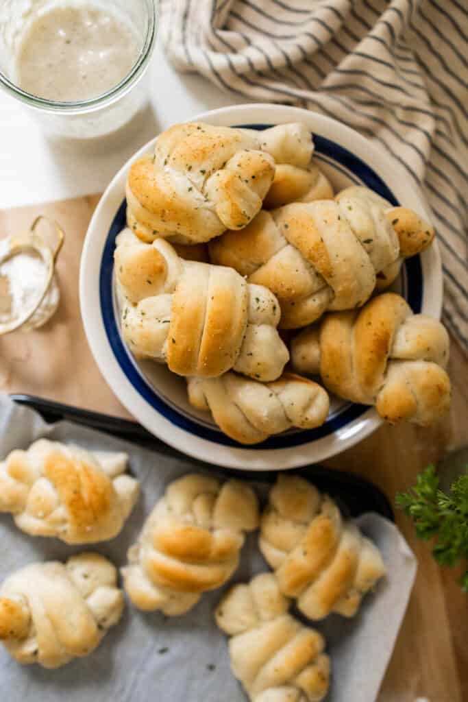 Not wanting to make knots? No problem! These can be twisted into bread sticks too!